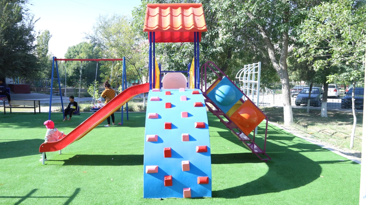 «Ko‘p xonadonli uylarni mukammal va joriy taʼmirlash hamda issiqlik taʼminoti obyektlarini qurish bo‘yicha injiniring kompaniyasi” DUK Navoiy viloyat hududiy filiali tomonidan Navoiy shahar Mustaqillik MFY M.Ulug‘bek ko‘chasi 15-sonli ko‘p qavatli uyning tutash hududida zamonaviy bolalar maydonchasi qurib foydalanishga topshirildi. Umumiy hisobda viloyatda Respublika byudjeti hisobidan 18 ta bolalar maydonchalarini qurish va taʼmirlash ishlari amalga oshirildi, o‘rindiqlar, yoritgichlar qurib berildi. Bu esa bolalarning bo‘sh vaqtlarini mazmunli o‘tkazib, sog‘lom turmush tarzini amalga oshirish uchun qulay shart-sharoitlarni hozirladi.